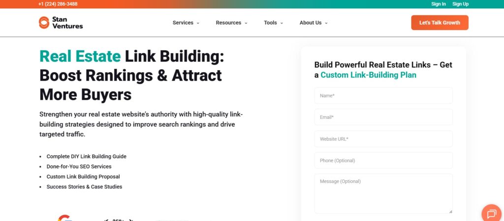 Stan Ventures is a leading SEO and digital marketing agency specializing in tailored link building and local SEO services for real estate professionals and other competitive industries. Headquartered in Lake Bluff, Illinois, the company has built a strong reputation for delivering measurable results through transparent strategies, manual outreach, and niche-relevant backlink placements.